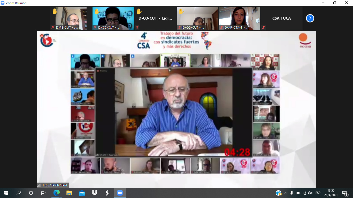 Con la activa participación de nuestra CTA de los Trabajadores (CTA-T) -y dentro de ella APA a través de Edgardo Llano, su secretario general, y Luciana Flesler, a cargo de la secretaría de juventud-. tuvo lugar en forma virtual este importante congreso sindical que reunió a las principales centrales gremiales de todo el continente bajo la consigna “Trabajo del futuro en Democracia: con sindicatos fuertes y más derechos”.