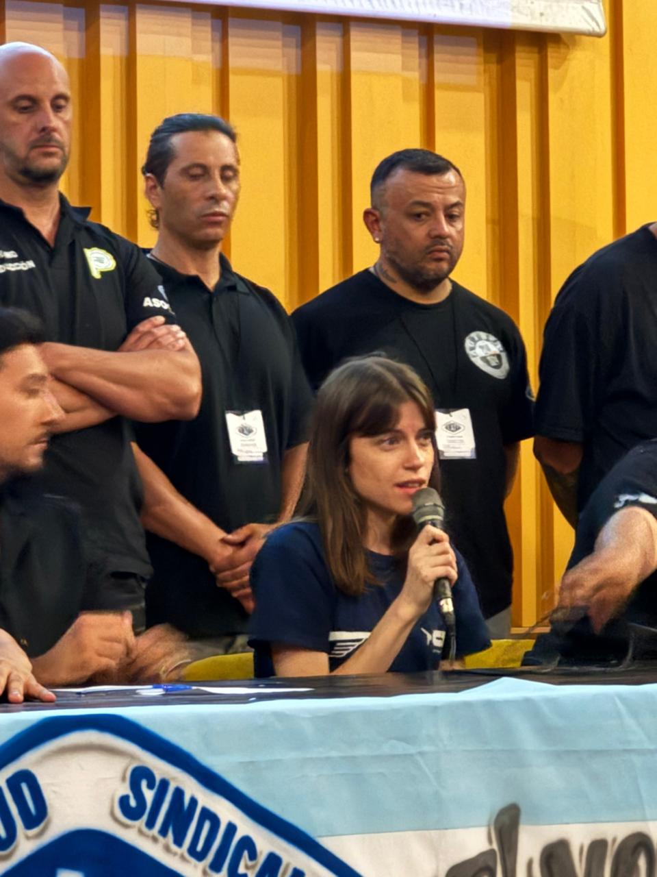 Entre los diferentes oradores destacamos a nuestro/a compañero/a Leandro Mena y Luciana Prastalo quienes pusieron la voz de las y los compañeros aeronáuticos/as en el Congreso.