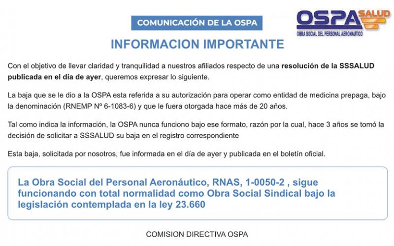 Novedades de OSPA la Obra Social de los Aeronauticxs