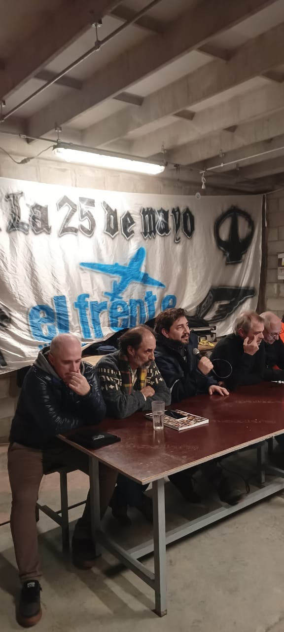 La primera charla tuvo lugar en el quincho de AA2000 con la participación de una gran cantidad de compañerxs que se quedaron después de su horario o que viajaron hasta Ezeiza para participar de esta propuesta.