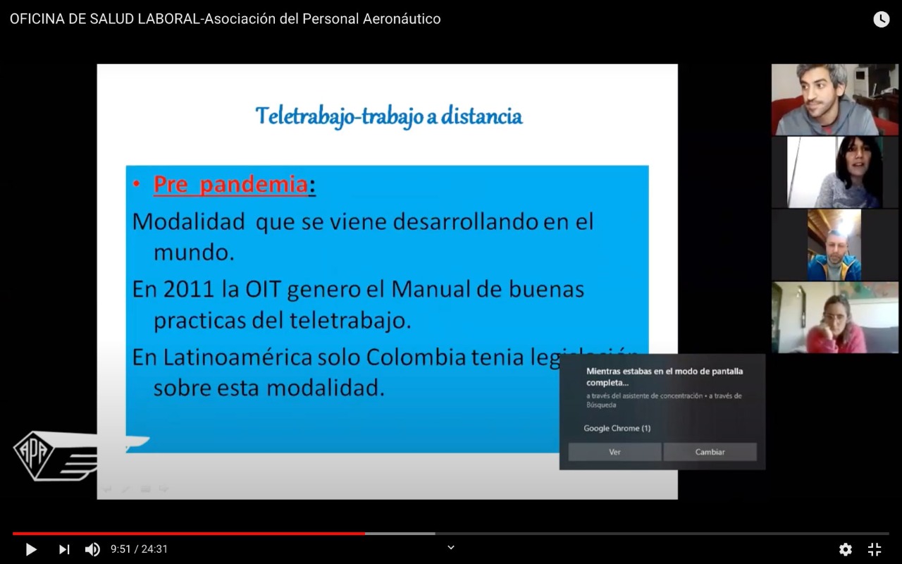 A través de un taller virtual, las compañeras y compañeros de la Oficina de Salud Laboral de APA presentaron un informe sobre la modalidad del trabajo a distancia (teletrabajo) que se ha generalizado a raíz de la situación de aislamiento social por la pandemia de COVID-19.